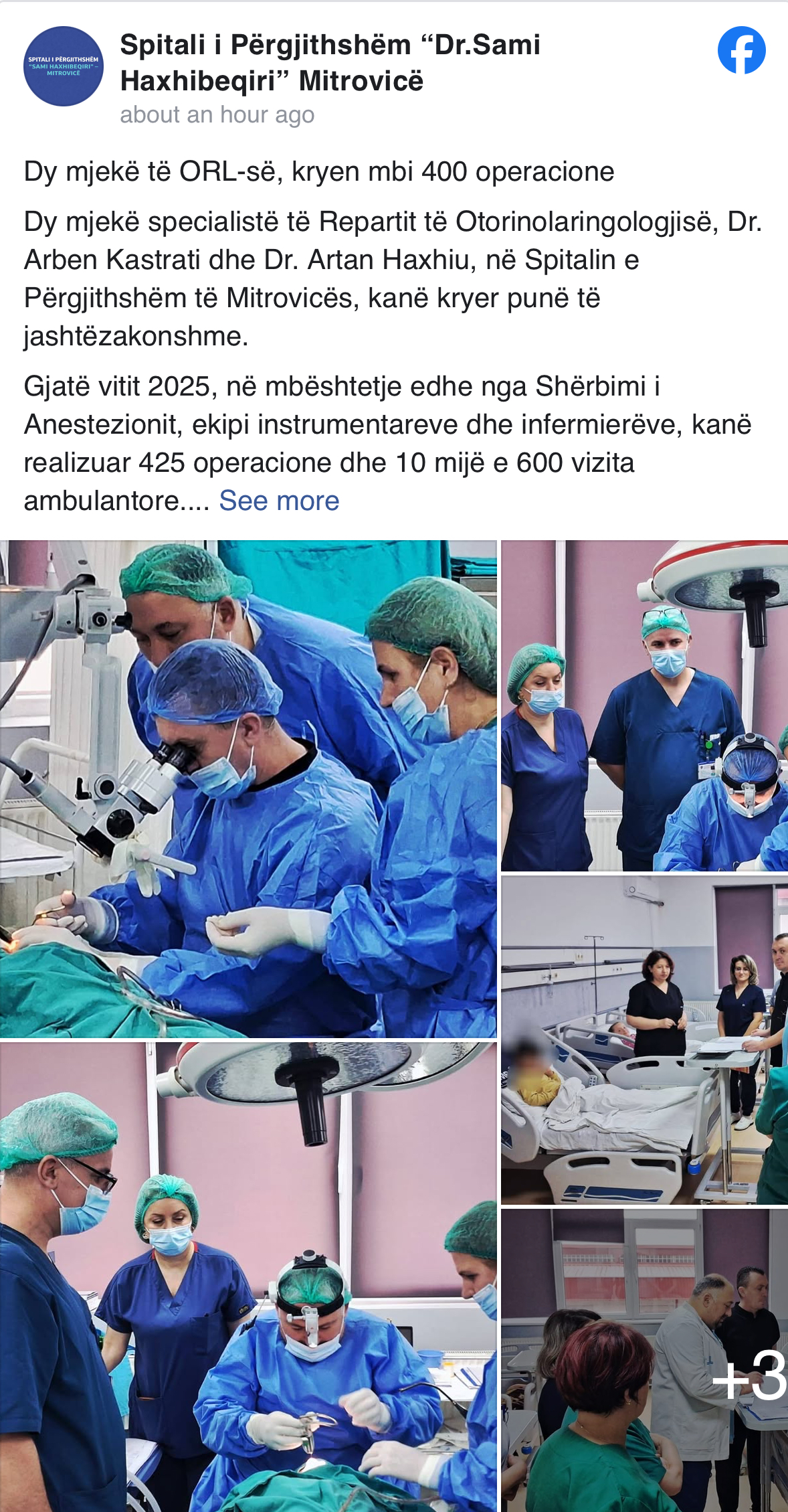 Dy mjekë specialistë të Repartit të Otorinolaringologjisë në Spitalin e Përgjithshëm të Mitrovicës, Dr. Arben Kastrati dhe Dr. Artan Haxhiu, kanë shënuar rezultate të larta pune gjatë vitit 2025.