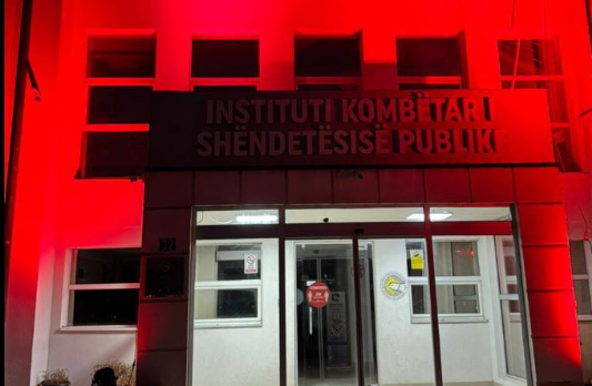 Instituti Kombëtar i Shëndetësisë Publike të Kosovës është ndriçuar me ngjyrë të kuqe mbrëmjen e 29 shtatorit, në shënim të Ditës Botërore të Zemrës.