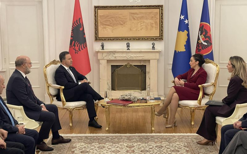 Kryetari i Kuvendit të Shqipërisë, Niko Peleshi, është pritur në takim nga Presidentja e Kosovës, Vjosa Osmani.