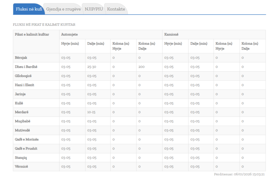 Kjo situatë është tek pika kufitar Dheu i Bardhë. Ndërkaq në pikat e tjera, pritjet s’janë më shumë se 15 minuta.