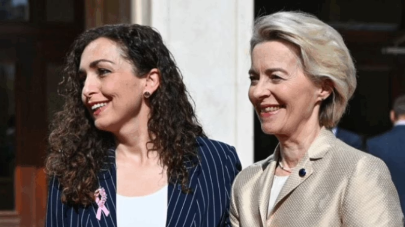 Gjatë qëndrimit në Kosovë, Von der Leyen u takua edhe me presidenten, Vjosa Osmani.
